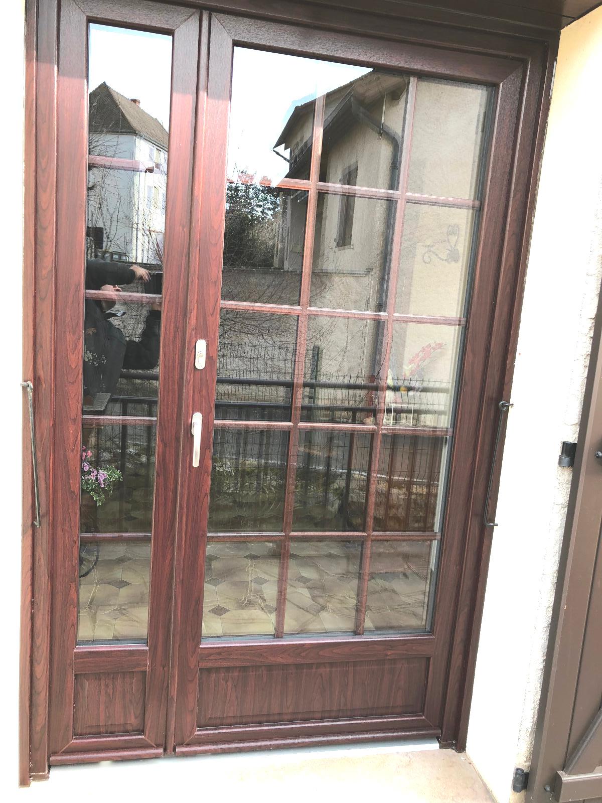 porte pvc , tiercé , acajou oscillobattant
