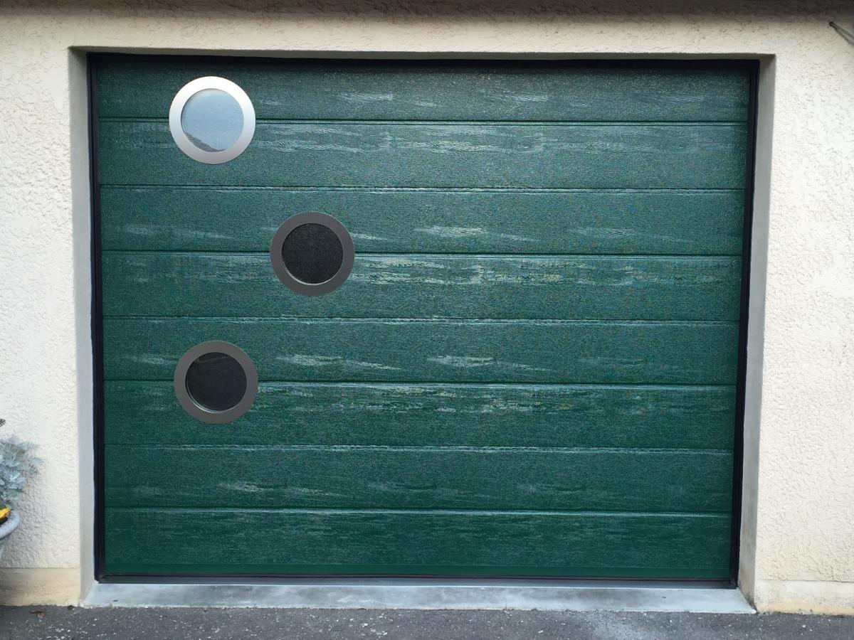 porte sectionnelle , hublots inox , vert 6005