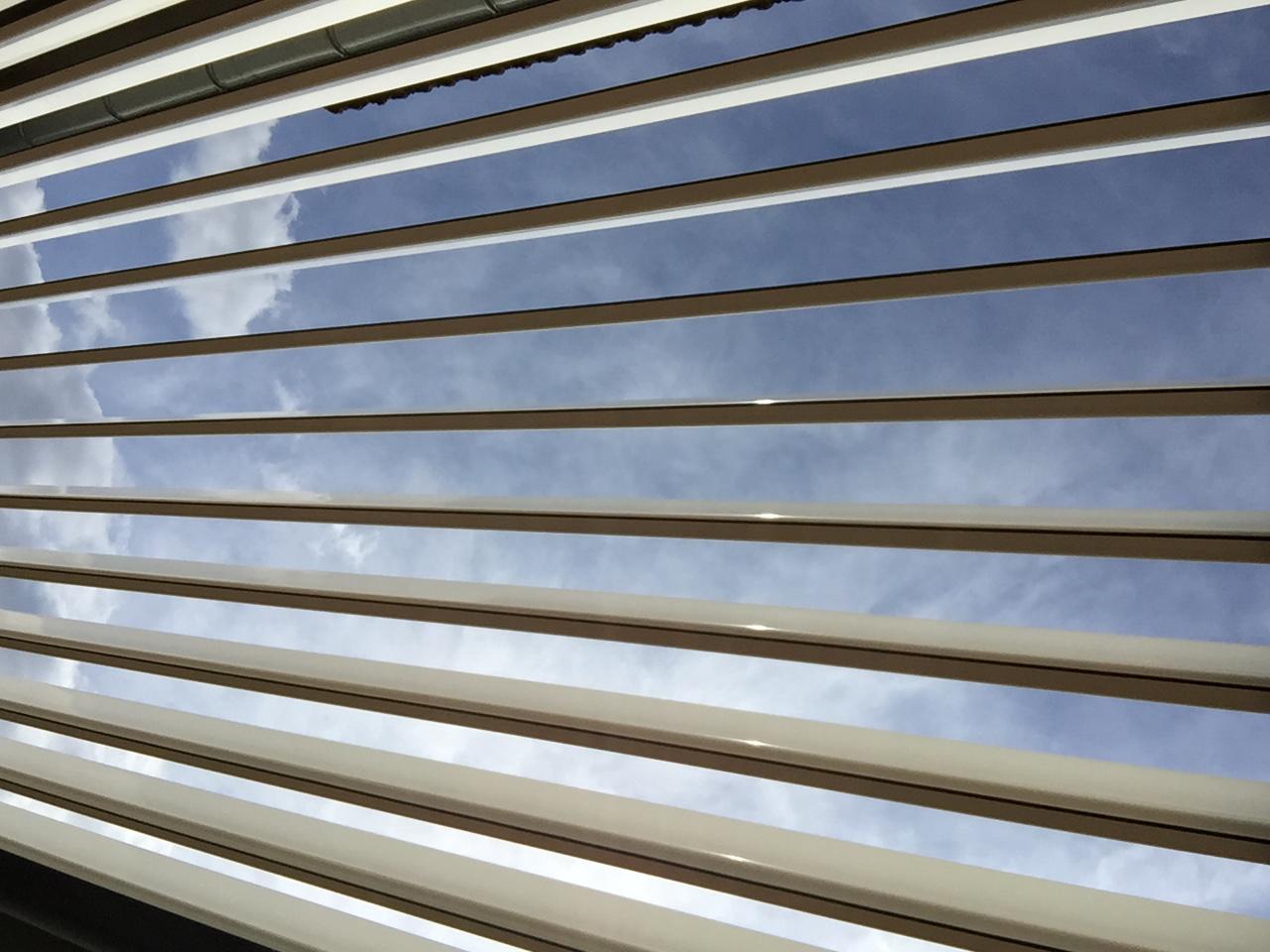 pergola en aluminium à lames orientables motorisées , position ouverte